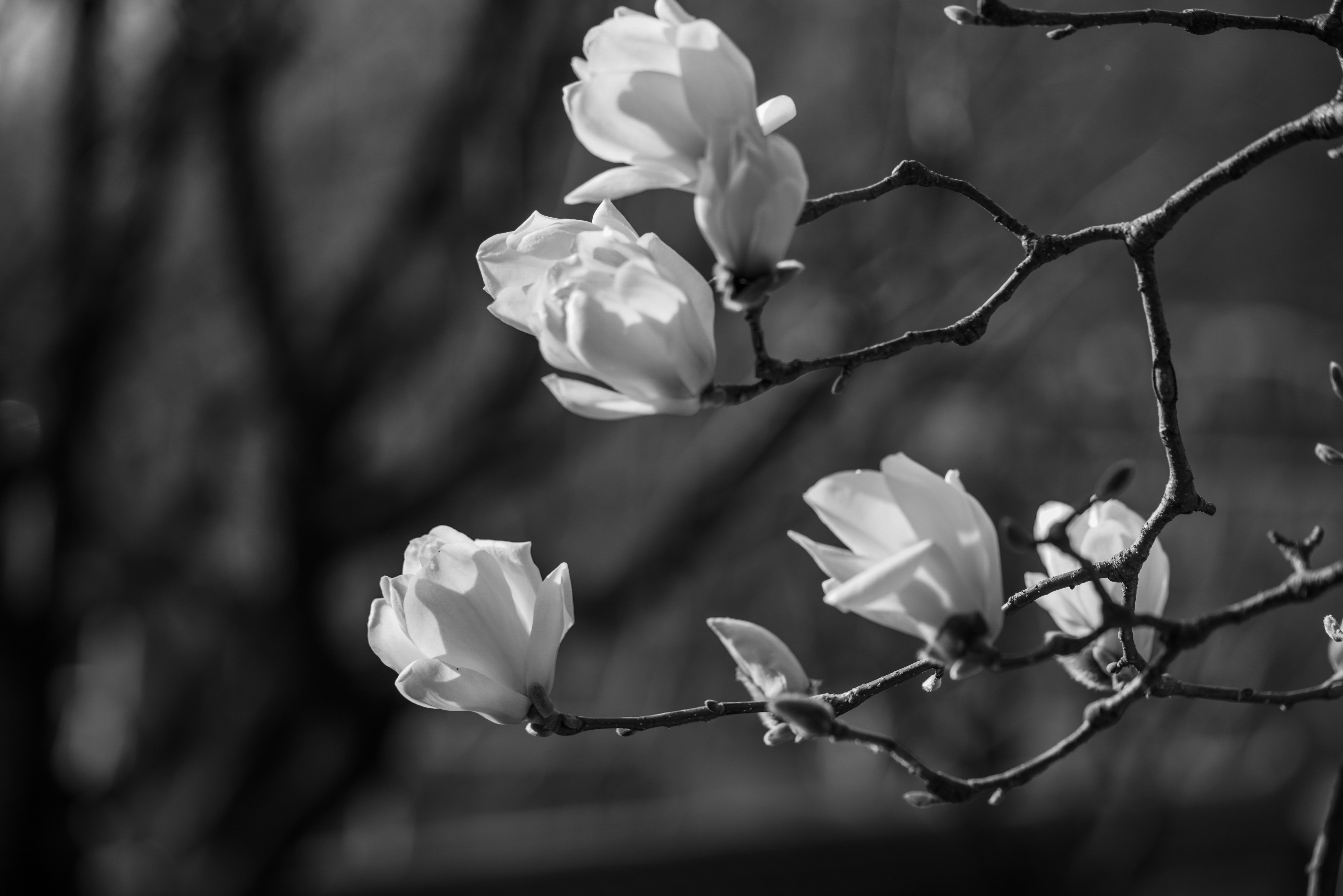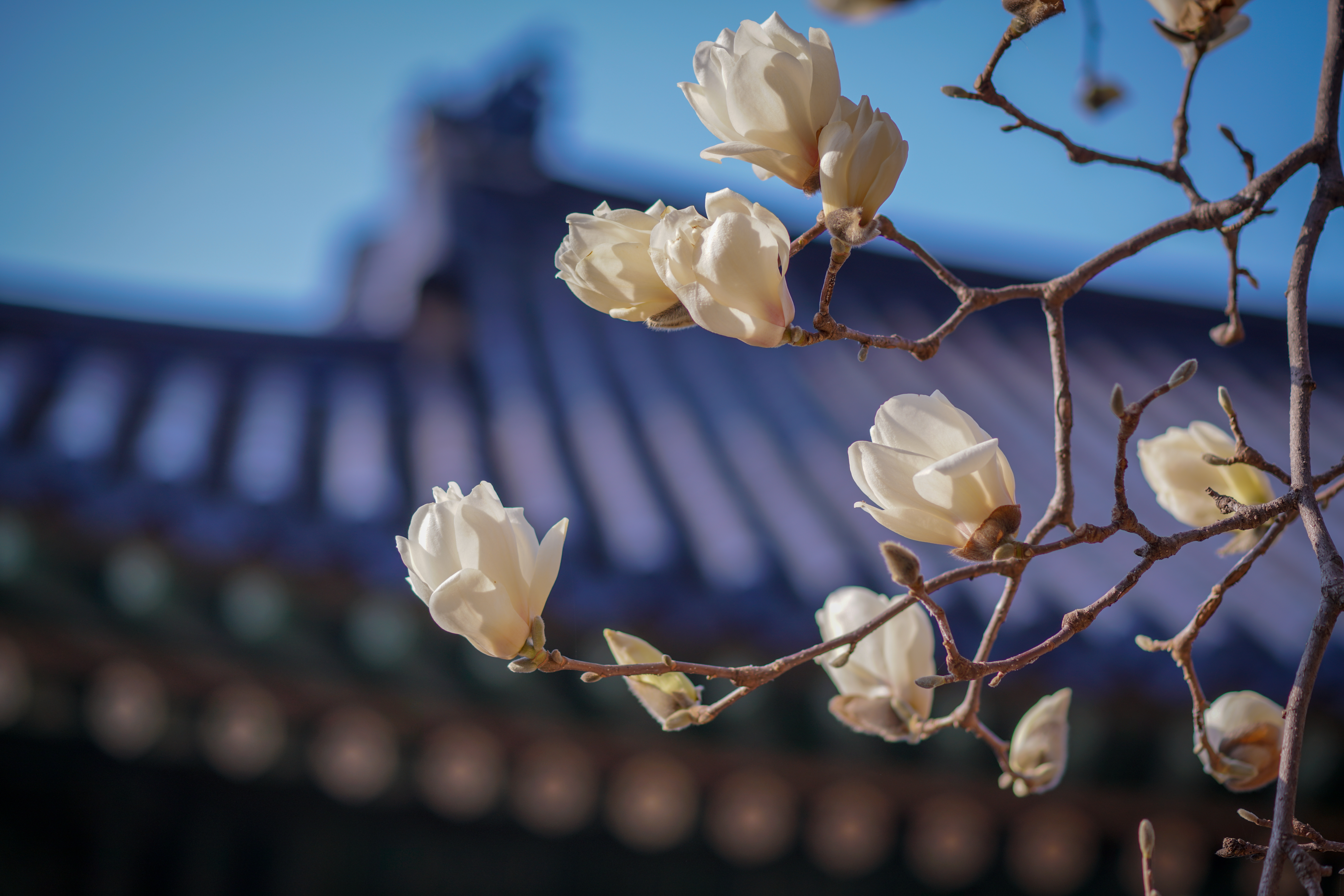 The magnolia flowers bloomed in the temple's backyard.